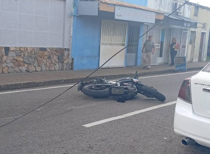 José Gregorio Ruiz Tucupita, 27 de noviembre de 2025. – Un motorizado resultó lesionado tras enredarse con un cable perteneciente a una empresa de telecomunicaciones que había quedado colgando...